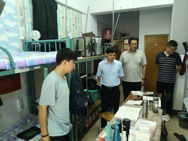 2020年8月20日—23日,我院在校学生已陆续分批返校。为了充分落实疫情防控工作,保证宿舍的和谐安全稳定,15vip太阳集团党总支书记崔良波、副书记赵辉以及学院全体辅导员进入宿舍对学生返校表示欢迎、致以问候。